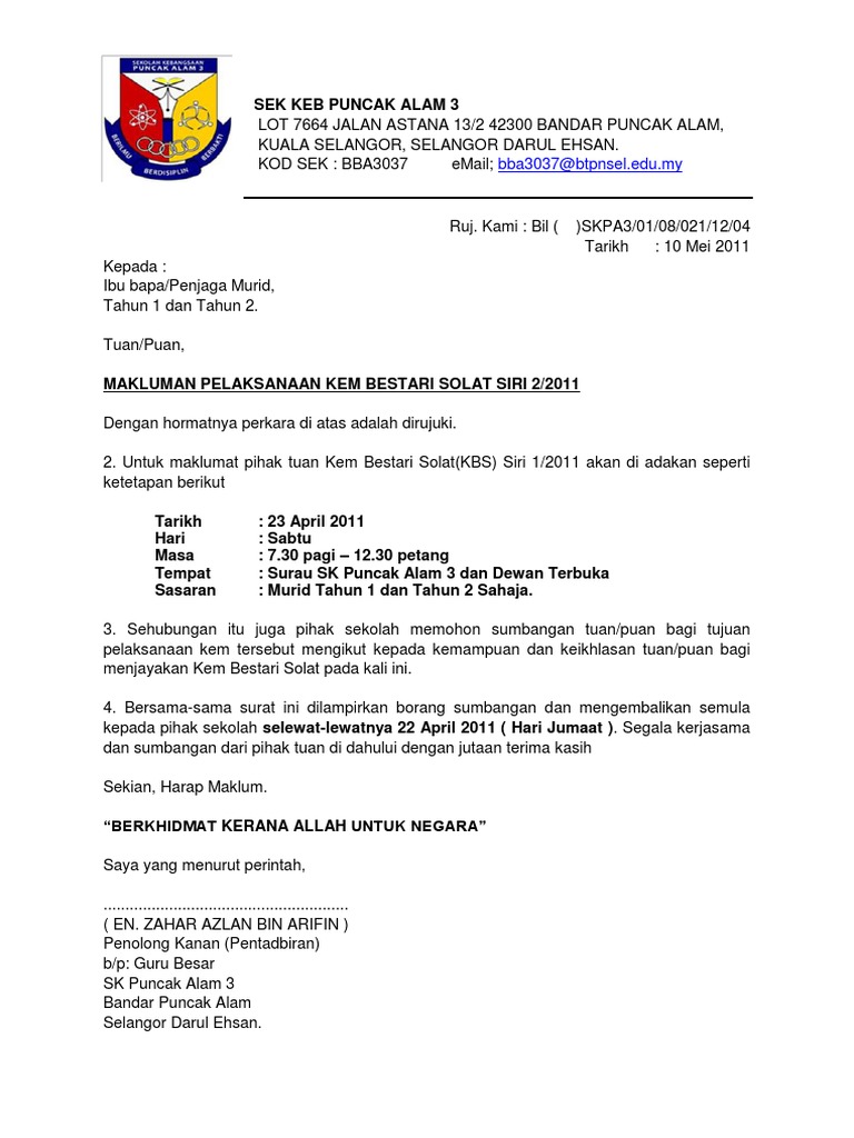 Surat Makluman Ibubapa Kem Bestari Solat Pdf